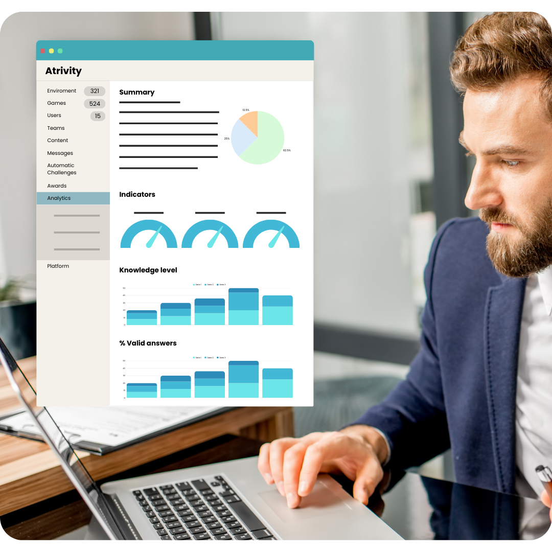 Powerful and detailed analytics with high granularity and unique KPIs like knowledge level and knowledge increase. Our platform tracks Knowledge levels and gaps allowing companies to make better business decisions.Well balanced and highly configurable game engine: +25 game mechanics, anti-cheating rules and +50 parameters configurable/game.
